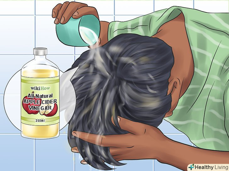 Прополощіть волосся яблучним оцтом. кислота оцту додасть волоссю здоровий блиск і допоможе їх розгладити.- Вимийте волосся з шампунем, ретельно прополощіть їх, потім нанесіть яблучний оцет, попередньо розбавлений водою в пропорції 4:1, від коренів і до кінчиків.
