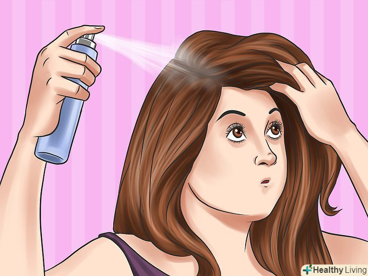 Для розгладження неслухняних пасом нанесіть спрей-блиск. розпорошите трохи спрею на волосся, а потім за допомогою зубної щітки або маленької гребінця пригладьте маленькі неслухняні волоски, які вибиваються з укладання. [6]- Такий спрей можна купити в магазині косметики та парфумерії або в інтернет-магазині.
