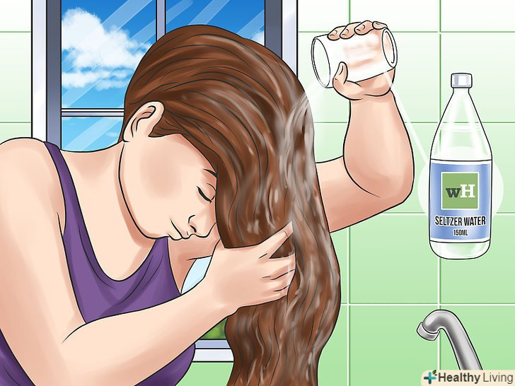Промийте волосся мінеральною водою з газом. це простий і легкий спосіб догляду за пушащимися волоссям. Низький рівень рН газованої води допоможе зменшити завивання волосся. [12]- Вимийте волосся шампунем і нанесіть кондиціонер. Потім обполосніть декількома склянками мінералки.