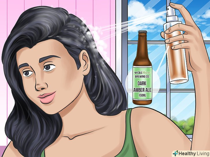 Прополощіть волосся пивом. природні ферменти, що містяться в пиві, допоможуть приборкати пушащиеся волосся і додадуть їм здоровий блиск. Темні сорти пива забезпечують найбільше зволоження через високий вміст в них поживних речовин. [18]- Нанесіть пиво на волосся і залиште на кілька хвилин.