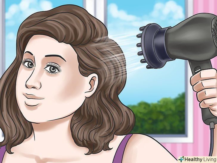 Сушіть феном тільки коріння волосся. Таким чином, ви додасте обсяг волоссю і не висушіть кінчики.- Використовуйте фен з насадкою-дифузором. Він запобіжить коріння волосся від надмірного нагрівання.