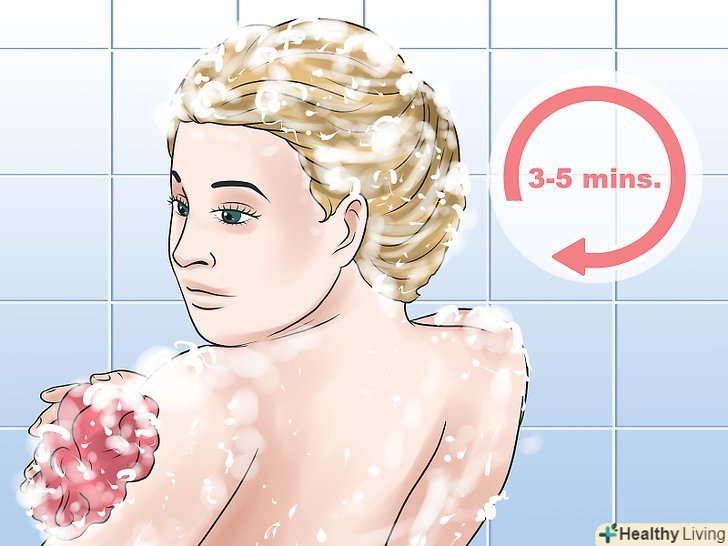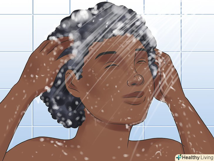 Залиште шампунь на волоссі на кілька хвилин. після того як ви нанесли шампунь, дайте йому час повністю проникнути у волосся. Прочитайте розділ інструкції до шампуню про тривалість нанесення. Зазвичай можна залишати шампунь на волоссі до 10 хвилин. [10]- Чим товще і грубіше волосся, тим довше можна залишати шампунь. Але краще перестрахуватися і почати з більш короткого проміжку часу, щоб перевірити реакцію волосся на шампунь.