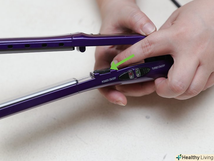 Встановіть потрібну температуру. щоб уникнути пошкодження волосся, встановіть праску на мінімальній температурі, яка впорається з Вашими волоссям. Її рівень залежить від індивідуальних властивостей вашого волосся.- Чим тонше ваше волосся, тим менше повинна бути температура. [14] для тонкого або дуже пошкодженого волосся використовуйте кнопку "low" або встановіть температуру 110-150 градусів Цельсія. Для середніх волосся використовуйте проміжну температуру 150-180 градусів. [15]