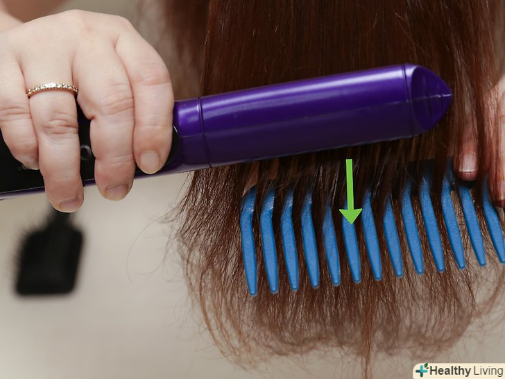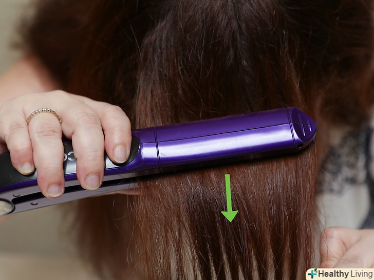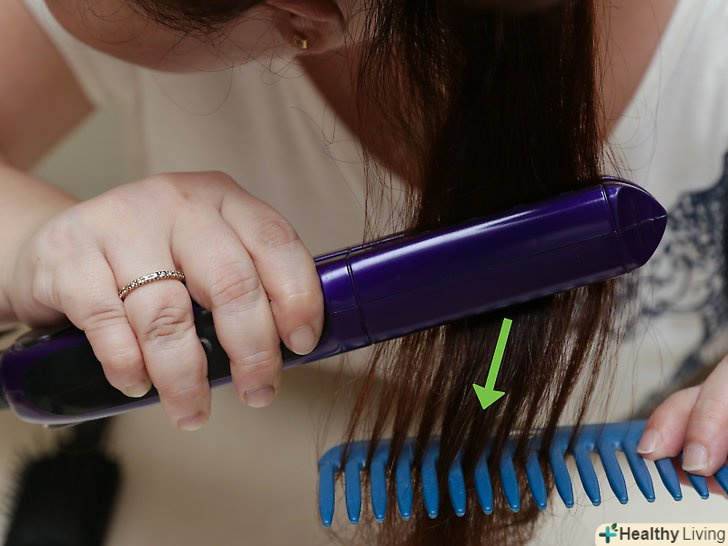 Випряміть волосся на маківці. як тільки ви випрямили верхні пасма, розташуйте праску якомога ближче до коріння і проведіть по волоссю. Це додасть фінальної гладкості. [22]