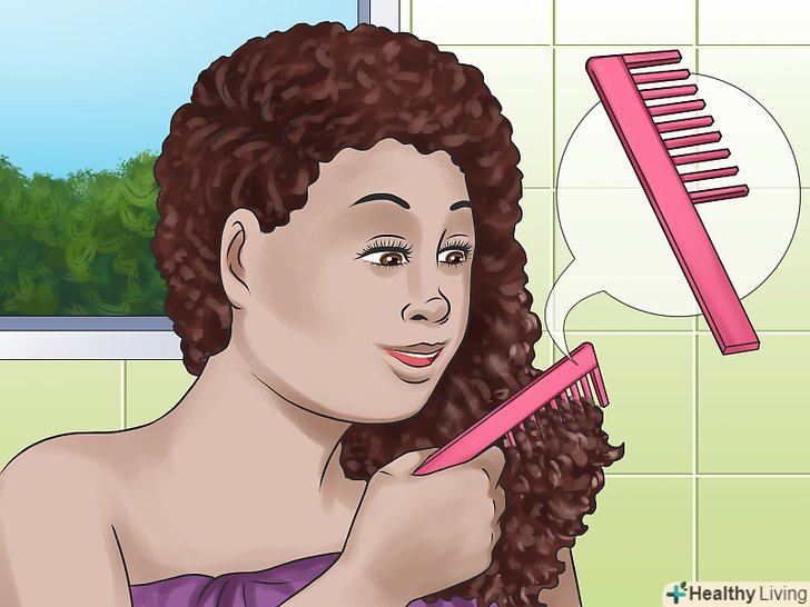 Використовуйте гребінь з широкими зубами. спочатку краще розділити волосся пальцями, а потім почати розчісувати їх від кінчиків до коріння. Зручніше буде робити це, поки Кондиціонер ще на волоссі, але можна також наносити незмивний кондиціонер і розчісувати волосся з ним. [16]