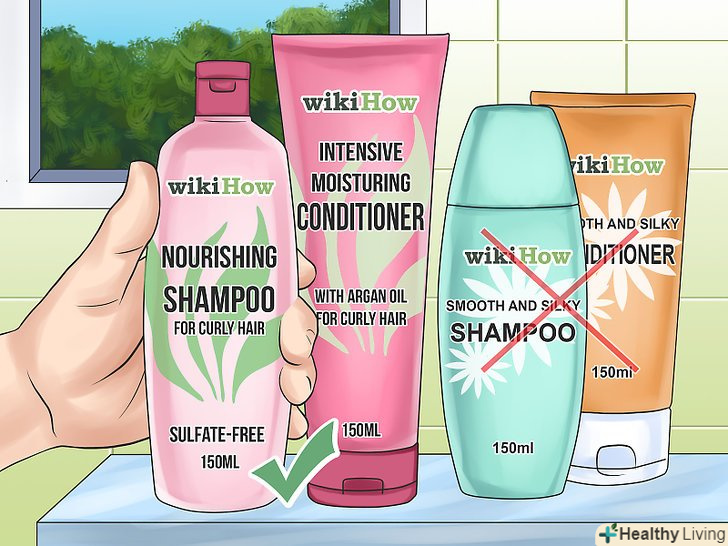 Замініть свої засоби для волосся. якщо Ви користуєтеся засобами з шкідливими для волосся хімічними сполуками або засобами, які не підходять для хвилястого волосся, ви можете травмувати волосся самі. Спробуйте перейти на більш натуральні засоби, розраховані на хвилясте волосся.- Не користуйтеся засобами з сульфатами. Така косметика позбавляє волосся природного сала, через що волосся пушаться. [15]