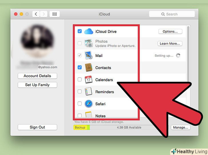 Поставте прапорці у тих функцій iCloud, які потрібно включити.Такими функціями є "Фото», «Пошта», "контакти" і так далі. Тепер ви увійшли в iCloud і активували потрібні функції.[3]