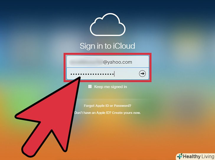 Введіть ідентифікатор Apple ID і пароль, а потім клацніть по значку у вигляді стрілки.тепер ви увійшли в iCloud.- Якщо у вас немає ідентифікатора Apple ID, натисніть «Створити», а потім дотримуйтесь інструкцій на екрані, щоб створити ідентифікатор і увійти в iCloud.