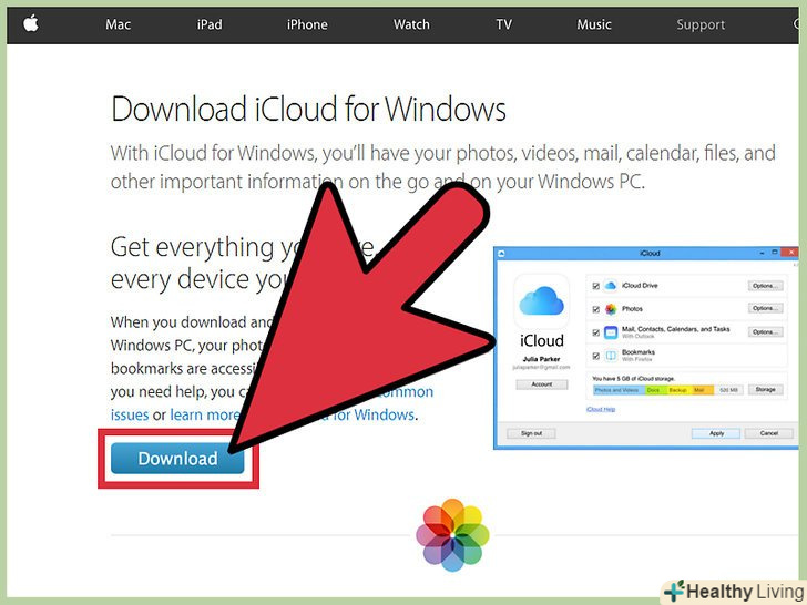 Відкрийте сторінку завантаження програми " iCloud для Windows "(Https://support.apple.com/ru-ru/HT204283). Ця програма сумісна тільки з Windows 7 і Windows 8.- Якщо на комп'ютері встановлена інша версія Windows, скористайтеся іншим методом входу в iCloud, який викладено в даній статті.