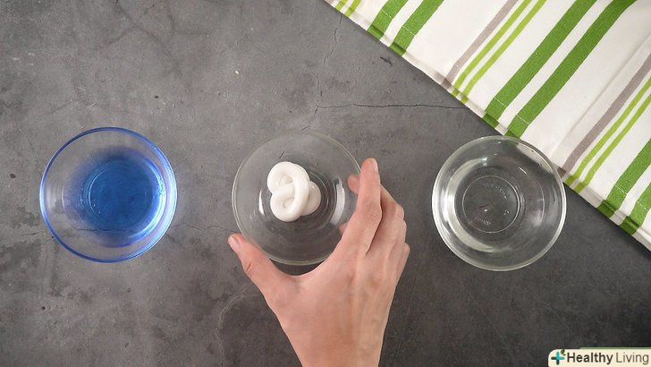 - Помістіть в миску рівні частини харчової соди і рідкого засобу для миття посуду. наприклад, можна взяти 2 столові ложки харчової соди і дві столові ложки щадного засобу для миття посуду. [5]