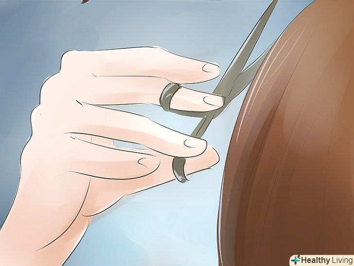 Зберіть волосся в тугий хвіст. Не використовуйте металеві шпильки або гумові стрічки, так як вони руйнують пасма. Зберіть волосся прямо на потилиці, де ви зможете зрізати їх максимально коротко і рівномірно. Перукар повинен зрізати волосся відразу під фіксатором хвоста.- Використовуйте кілька фіксаторів для надійності хвоста або зробіть кілька витків коси, щоб волосся не розділялися.