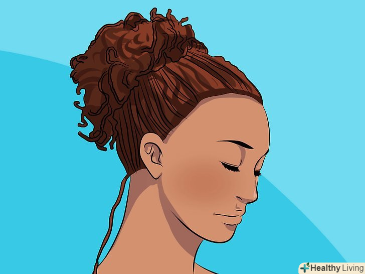 Укладайте волосся Як захочете. оскільки афролокони тонкі, вони дуже універсальні і їх можна укласти самими різними способами. Для афролоконов можна використовувати всі можливі способи укладання розпущеного волосся.- Локони можна зав'язати в кінський хвіст, "мальвінку", заплести в косу, кручені нитки, африканські косички або робити пучок.