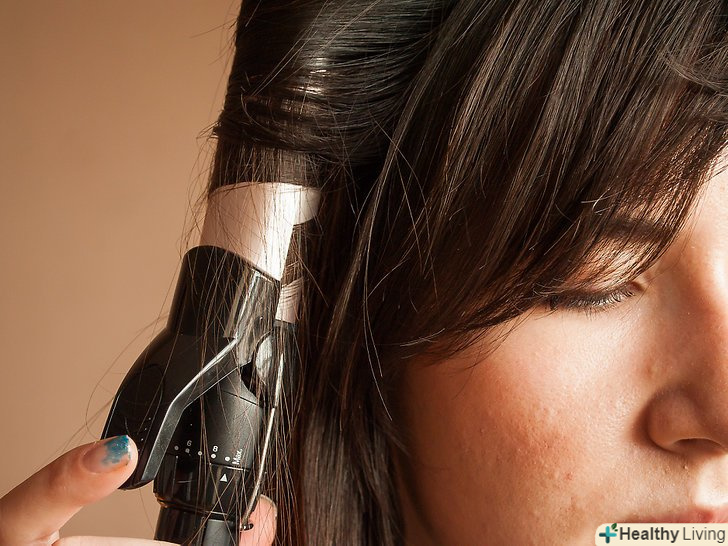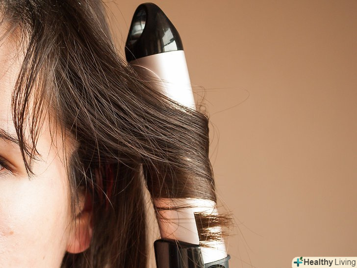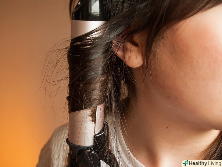 Почніть працювати з не зав'язаною частиною волосся. почніть з однієї, маленької пасма волосся, яка не зав'язана в хвіст. Візьміть плойку і почніть працювати з самого початку пасма, рівно загортаючи волосся навколо плойки.
