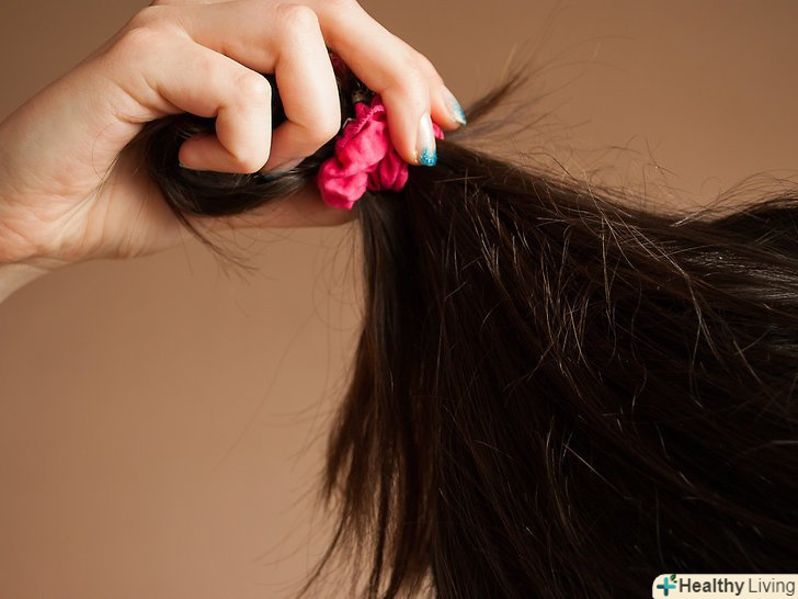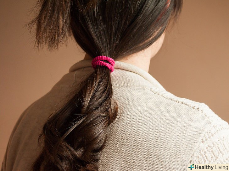 По закінченню тридцяти секунд, зав'яжіть кучері в пухкий хвіст. це буде гарантувати, що вони не будуть Вам заважати, поки ви працюєте на іншою частиною волосся – тієї, яка спочатку була зав'язана в хвіст.