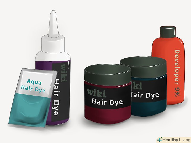 Купуйте знебарвлюючу, освітлюючу фарбу або фарбу попереднього освітлення в магазині косметичних товарів. вона буде потрібно для освітлення кінчиків смуг, фарба з фарбувальним пігментом буде потрібно пізніше. Якщо у вас і так світле волосся, ви можете пропустити даний крок.- Якщо ви просто хочете створити вигляд в стилі омбре зі світлими кінчиками волосся, ви можете купити освітлюючий набір L'oreal Paris' Ombre. Тони можуть бути дещо більш невловимі, ніж при окремому використанні спеціально придбаної осветляющей фарби на темному волоссі.