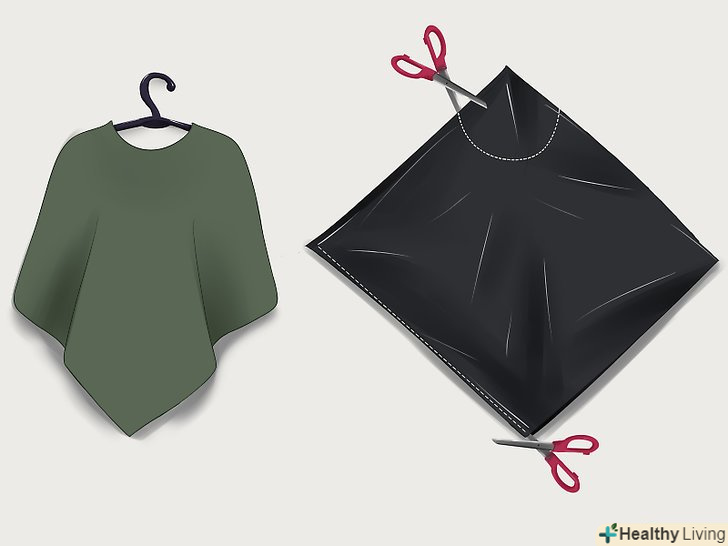 Знайдіть пончо або накидку для стрижки волосся. якщо у вас цього немає, виріжте отвір у сміттєвому пакеті, щоб через нього можна було просунути голову.