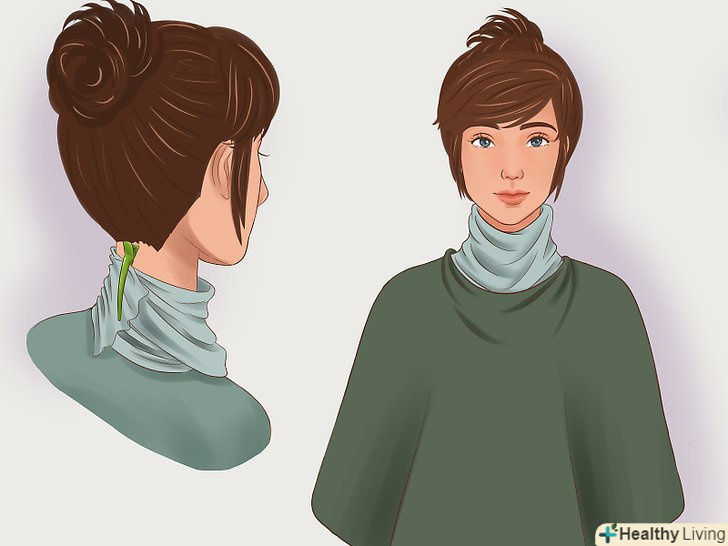 Оберніть шию старим рушником для рук. зафіксуйте його і надіньте накидку для стрижки волосся або сміттєвий пакет.