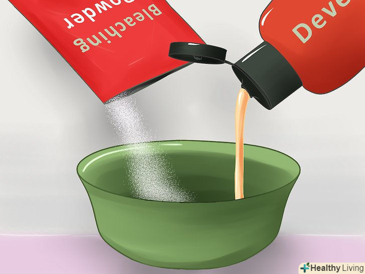 Підготуйте освітлюючу фарбу або суміш для попереднього освітлення волосся згідно доданої до неї інструкції.