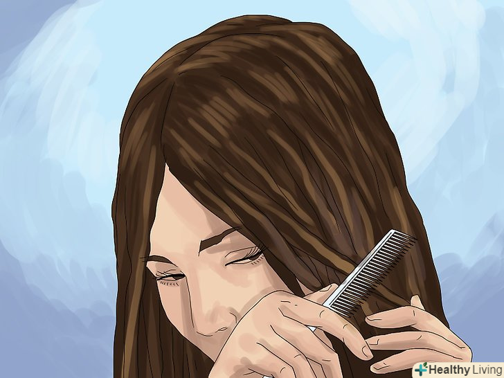 Використовуйте пальці або тонку частину гребінця, щоб витягнути завитки волосся.- Почніть з тієї частини, яку Ви першу обробили распрямителем. Знову розділіть волосся на невеликі пасма, приблизно по 3 мм.пальцями тягніть пасмо, розпрямляючи завиток. Ви також можете використовувати тонку частину гребінця або просто провести по волоссю плоскою частиною гребінця. Зробіть це двічі у всіх 4-х секціях.