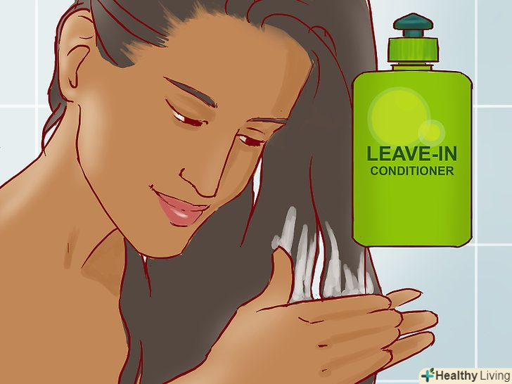 Подумайте над використанням незмивного кондиціонера для волосся. щоб провести більш глибоке кондиціонування волосся, скористайтеся незмивним кондиціонером. Вам лише потрібно помити голову, нанести на волосся трохи кондиціонера і не змивати його. Дві-три краплі кокосового або мигдалевого масла, втерті в нижню частину волосся, дозволять утримати вологу і допоможуть запобігти висиханню волосся. [11]- Не наносите більше масла, інакше волосся стане сальними.