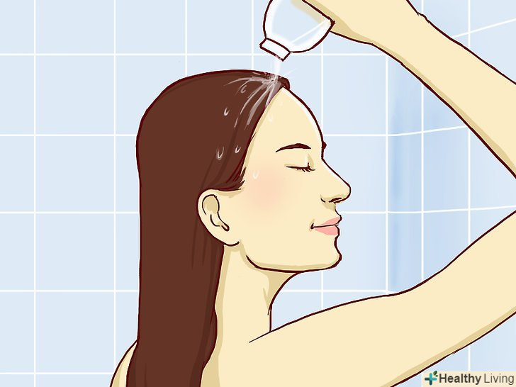Додайте у воду оцет. додайте одну столову ложку (15 мл) білого оцту на 3 склянки (720 мл) води. Прийміть душ і помийте голову. Оцет допоможе прибрати мінеральні відкладення з жорсткої води, покращуючи блиск і пишність волосся. [12] коли прийде пора змивати шампунь з волосся, зробіть це підготовленим розчином.