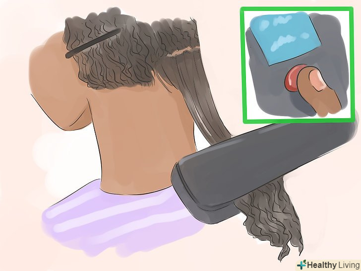 Спочатку перевірте температуру прасування на невеликій ділянці волосся. волосся різних текстур по-різному реагують на різну температуру. Багато хто воліє вибирати 150 °C, але вам може підійти більш висока або більш низька температура. [10]- Якщо тестовий ділянку волосся добре відреагує на температуру, спробуйте знизити температуру. Намагайтеся використовувати мінімально можливу температуру для випрямлення волосся. Якщо волосся не випрямляються на більш низькій температурі, збільште її.