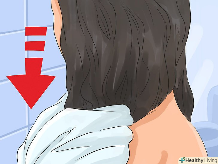 Акуратно промакивайте вологе волосся рушником зверху вниз. груба сушка рушником може зробити завитки більш вираженими. Розділіть волосся на частини і акуратно промокніть кожну частину рушником зверху вниз. Це буде менш шкідливо для волосся, ніж хаотичне тертя вгору і вниз по всьому волоссю. [2]- Замість звичайного махрового рушника використовуйте рушник з мікрофібри. Воно дозволить пригладити волосся.