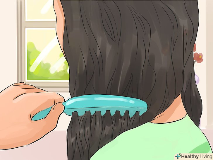 Використовуйте Розгладжуючі бессульфатние шампуні і кондиціонери. самі по собі шампуні і кондиціонери не випрямлять волосся, проте є спеціальні засоби, які підходять для зміцнення випрямленого волосся. Якщо на засобі зазначено, що воно розгладжує, це означає, що воно буде глибоко зволожувати волосся і готувати їх до випрямлення. Після того як помиєте голову шампунем, нанесіть на волосся кондиціонер щіткою і змийте засіб теплою водою. [1]- Розберіть сплутані ділянки волосся, перш ніж наносити кондиціонер. Якщо волосся сплуталися, розберіть їх пальцями або гребенем з широкими зубами.