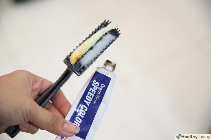Фарба для волосся повинна бути такого ж відтінку, як колір тієї фарби, яку ви використовували. можливо, навіть на тон світліше. Пам'ятайте, що зазвичай на ділі відтінок виявляється трохи темніше, ніж намальовано на упаковці.- Прочитайте вказівки на упаковці.
