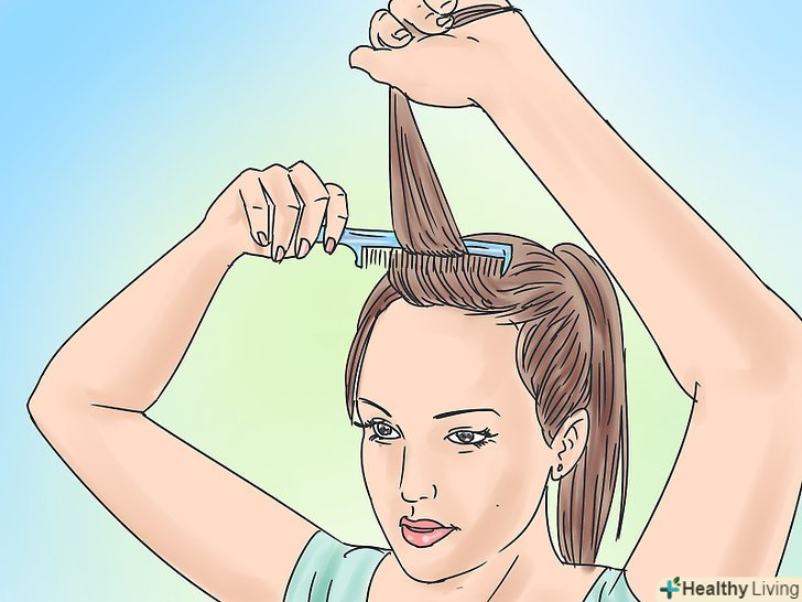 - Для начісування волосся, візьміть пасмо волосся за кінці і підніміть її над головою. Помістіть гребінь на півдорозі між вашою головою і рукою, і начісуйте волосся вниз, в сторону голови. [1]