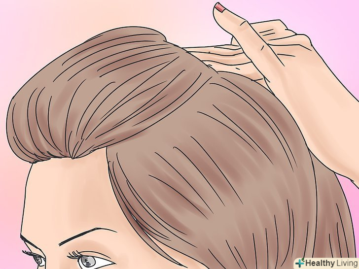 Пригладьте і закріпіть чубок. після того як ви начесали всю передню частину волосся, ви готові формувати чубок. Не хвилюйтеся, якщо ваше волосся виглядає як Пташине гніздо на даний момент - саме так вони і повинні виглядати!- Візьміть гребінець з м'якою щетиною і злегка причешіться назад до хвостика. Постарайтеся зробити волосся на зовнішній стороні чубчика красивими і гладкими, але волосся внизу залишити начесаним, оскільки ви не хочете переробляти всю вашу важку роботу!