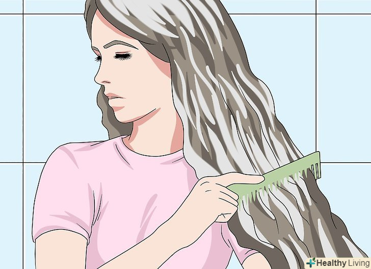 Розчешіть покриті маскою волосся. після того як завдасте маску на всю поверхню голови, візьміть гребінець з широкими або середніми зубами. Як тільки ви покриєте волосся маскою, розчешіть їх. Таким чином, маска більш рівномірно розподілиться по волоссю. [6]- Цей варіант підійде не кожному типу волосся. Наприклад, якщо у вас кучеряве волосся, ви можете розчесати волосся просто своїми пальцями або пропустити цей крок.