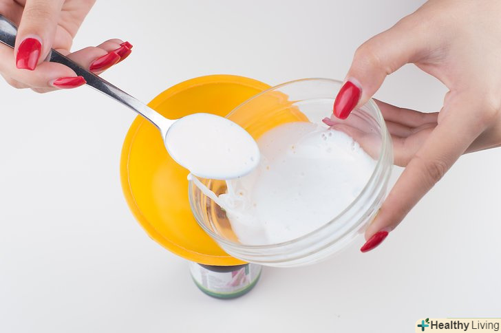 Зберіть інгредієнти. для створення шампуню з алое вера потрібно тільки чотири інгредієнти: рідке мило Кастилії, гель Алое вера, гліцерин і рослинне масло. Всі ці інгредієнти можна придбати в магазині здорового харчування або природної медицини. Гель Алое вера можна купити в пляшках або зібрати безпосередньо з листя рослини за допомогою ложки.- Щоб зібрати гель безпосередньо з рослини, в першу чергу розріжте лист алое вера. Розріжте лист навпіл і розкрийте половинки. Густий напівпрозорий гель можна збирати з листя ложкою.