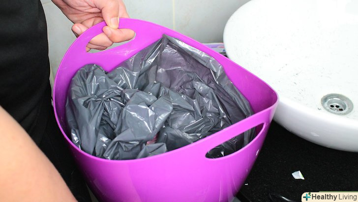 Поставте собі під ноги сміттєвий кошик, щоб в неї падали обсипаються волоски. з тримера будуть сипатися дрібні волоски, особливо при наявності у вас рясної рослинності. Найкраще поставити на підлогу сміттєвий кошик під час гоління, щоб уникнути безладу.- Після струшування всіх волосків в кошик візьміть змочений у воді паперовий рушник і приберіть весь можливий безлад.