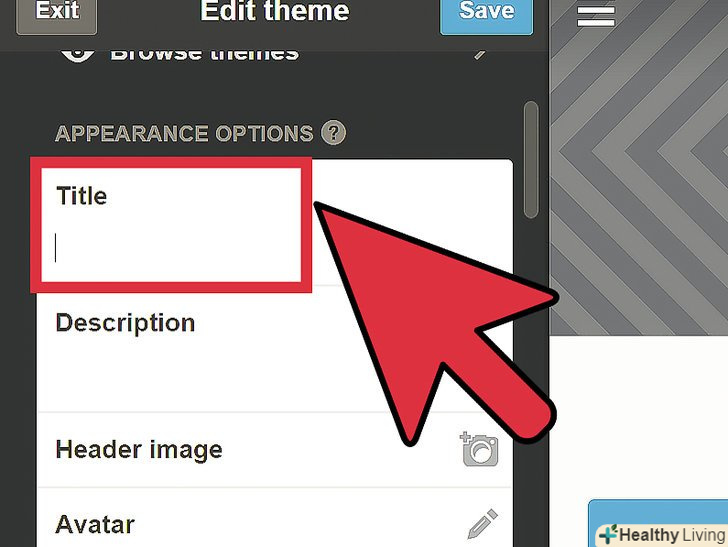 Назвіть свою сторінку.у лівій частині екрана знаходяться функції налаштувань для вашого блогу. У лівій бічній панелі, по центру, знаходиться поле, куди ви можете ввести ім'я свого блогу і невелике до нього опис. Зробіть це.