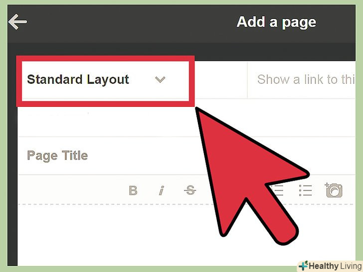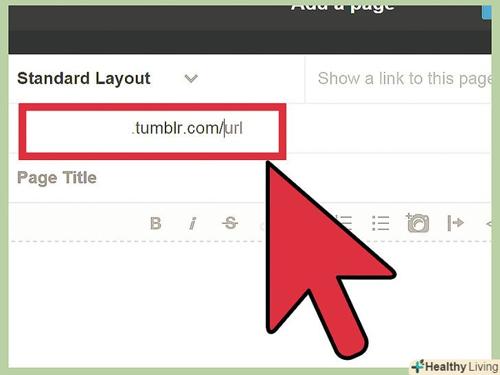 Виберіть формат сторінки.З'явиться нове вікно, в якому ви можете налаштувати свою сторінку. У самому верху знаходиться формат вашої нової сторінки. У вас є три стандартних вибору: Standard Layout (стандартний формат), Custom Layout (настроюється формат), and Redirect (переадресація).- ОпціяСтандартний Формат створить сторінку такого ж формату, як і поточна тема Tumblr. З нею найлегше працювати, та виглядає вона теж краще за інших.