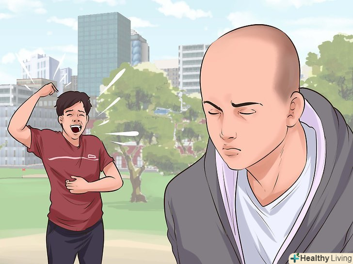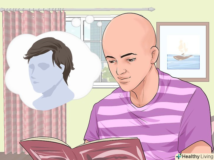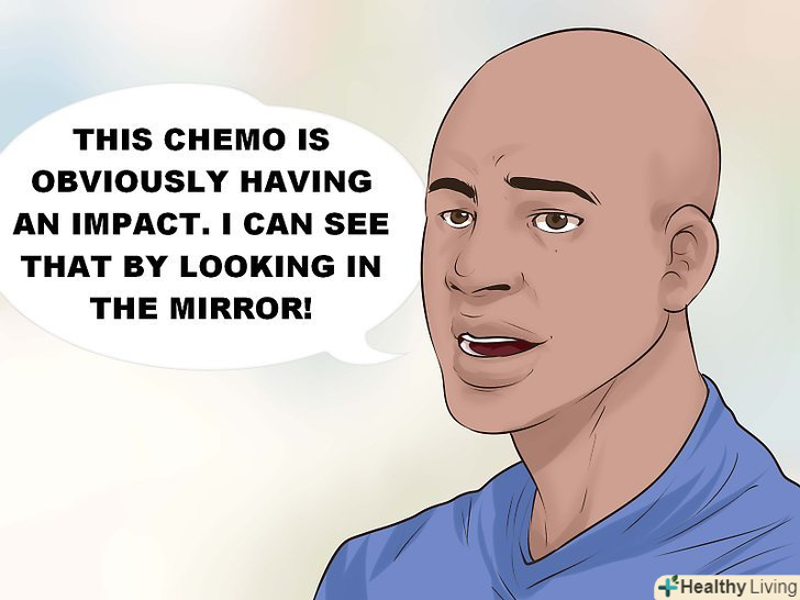 Цінуйте своє здоров'я. якщо облисіння стало результатом захворювання, це може бути важко пережити. Ви і так зіткнулися з емоційними і фізичними змінами, тому вам нелегко прийняти ще й втрату волосся. Змінити сприйняття ситуації складно, але можливо. Не думайте про те, що хіміотерапія змусила вас втратити волосся. Подумайте про те, що лікування працює, і ви бачите результат у дзеркалі кожен день. Думки про хороше (і впевненість в собі) позитивно впливають на самопочуття — як фізичне, так і емоційне. [7]
