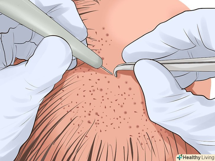 Спробуйте зробити пересадку волосся. якщо ви категорично не хочете розлучатися з волоссям, вам може допомогти пересадка волосся. Найчастіше ця процедура буває показана чоловікам або жінкам, які генетично схильні до часткової втрати волосся, а також людям, які втратили волосся в результаті травм (наприклад, опіків). Якщо вам здається, що цей варіант може підійти вам, запишіться на прийом до лікаря, щоб дізнатися про процедуру побільше і краще розуміти її. [17]- Вивчіть доступну інформацію. Вам буде потрібно хірург-дерматолог з хорошими відгуками. Задайте йому питання про саму процедуру, про відновлювальний період і можливі побічні ефекти.