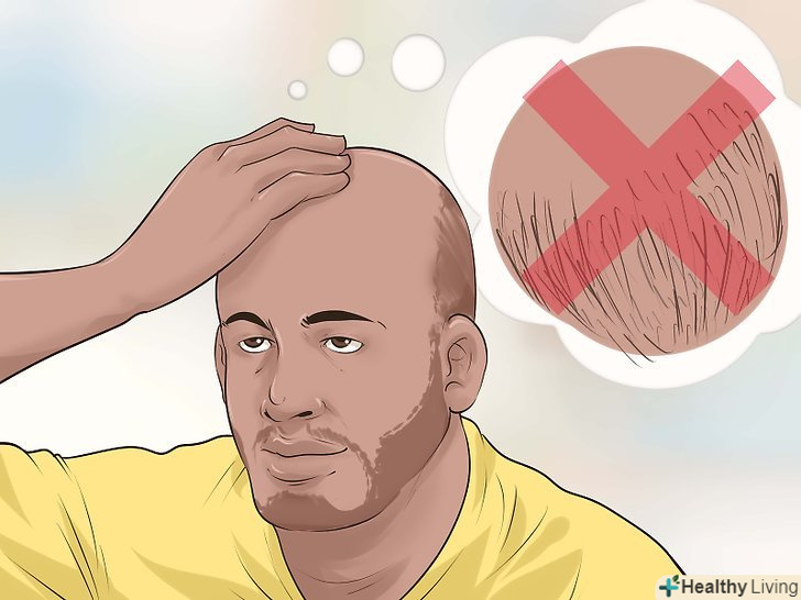 Доглядайте за шкірою. ви можете хотіти або не хотіти приховувати облисіння, але вам в будь — якому випадку слід доглядати за шкірою-так ви будете краще виглядати і відчувати себе. Багато людей не розуміють, що навіть якщо голова поголена, її все одно потрібно мити з шампунем і кондиціонером. [15] на голові залишається безліч маленьких волосків, які теж потрібно мити. Не забувайте наносити на голову сонцезахисний крем кожен день. Ставтеся до шкіри голови так само, як ви ставитеся до всієї іншої шкіри. Ви будете виглядати краще, станете здоровішими, і це відіб'ється на вашому ставленні до себе. [16]