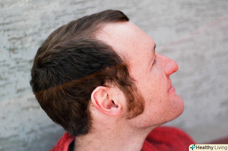 Розчешіть волосся наперед і зробіть уявний проділ по центру його голови, як якщо б відстань між очима ділило голову на праву і ліву половини.