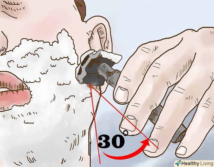 Тримайте бритву правильно. якщо ви голитеся бритвою з декількома лезами (а, швидше за все, це саме так), то тримайте бритву правильно, під кутом приблизно в 30 градусів до шкіри, а головку бритви - навпроти шкіри. Вказівний палець витягніть у верхівки бритви.- Якщо бритва з плаваючою головкою, то почніть голитися із зусиллям достатнім, щоб трохи змінити нахил головки.