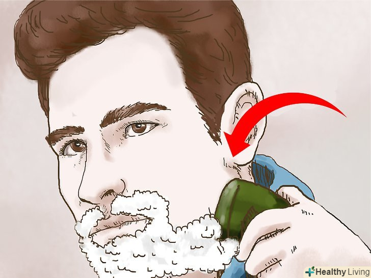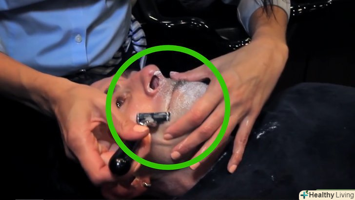 - Проведіть бритвою по шкірі. "'Тиснути не обов'язково"', це може привести до порізів. Постарайтеся вести бритвою по обличчю якомога акуратніше.
