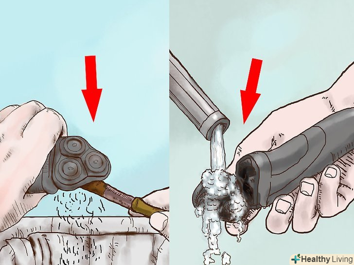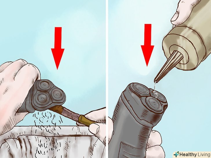 Почистіть бритву після використання. після гоління в бритві залишаться волосся і лусочки шкіри, яким саме місце в сміттєвому відрі.- Як варіант, нанесіть трохи мастильного матеріалу з м'якого металу на бриючу головку після того, як почистіть її. Це поліпшить роботу бритви.