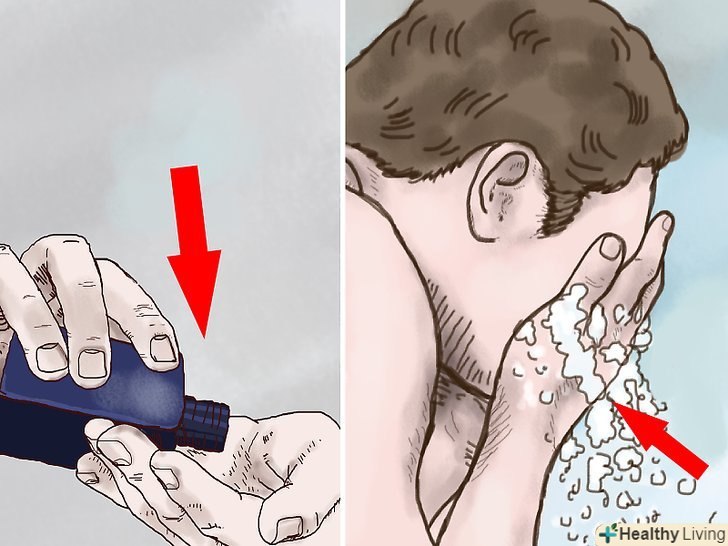 Якщо є час, вмийтеся теплою водою зі скрабом для обличчя. умивання після гоління допоможе вам позбавитися від лусочок мертвої шкіри, зібраних під час гоління.- Скраби для обличчя з маслом чайного дерева і ліщини особливо гарні, так як вони захищають від появи прищів і заспокоюють роздратовану шкіру відповідно. [8]