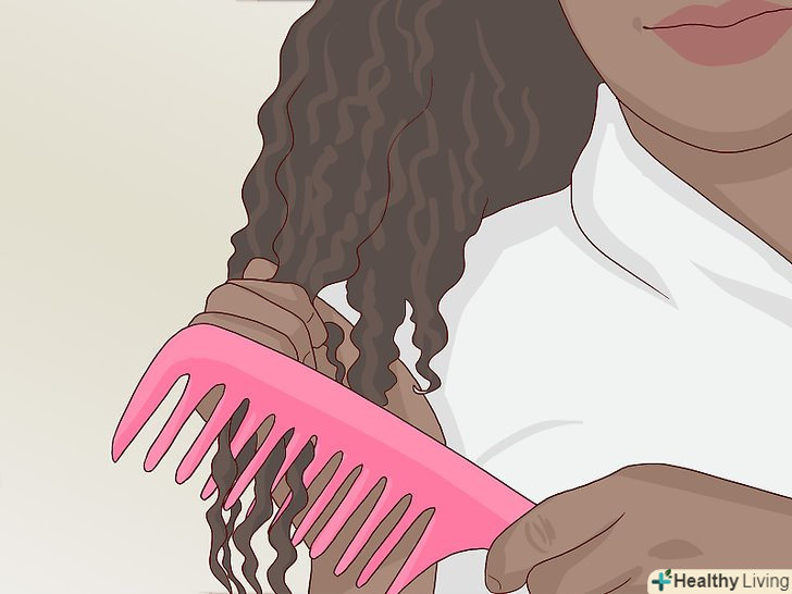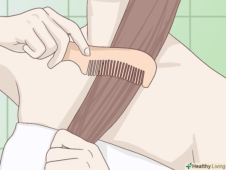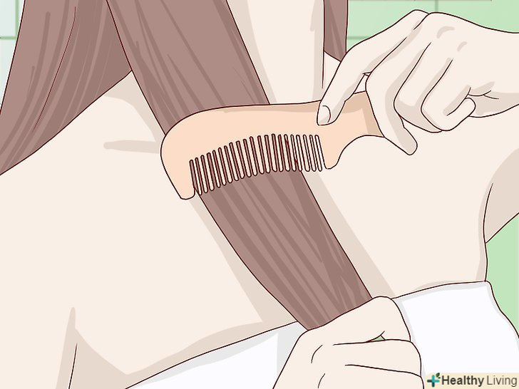 Розчешіть волосся. роботу слід починати на все ще вологих після миття волоссі. Візьміть плоску гребінець і кілька разів прочешіть нею волосся. Завершивши роботу з гребінцем, додатково прочешіть волосся руками. Переконайтеся в тому, що в волоссі не залишилося поплутаних ділянок. Струсіть головою і ще раз розчешіть волосся плоскою гребінцем або щіткою. [1]