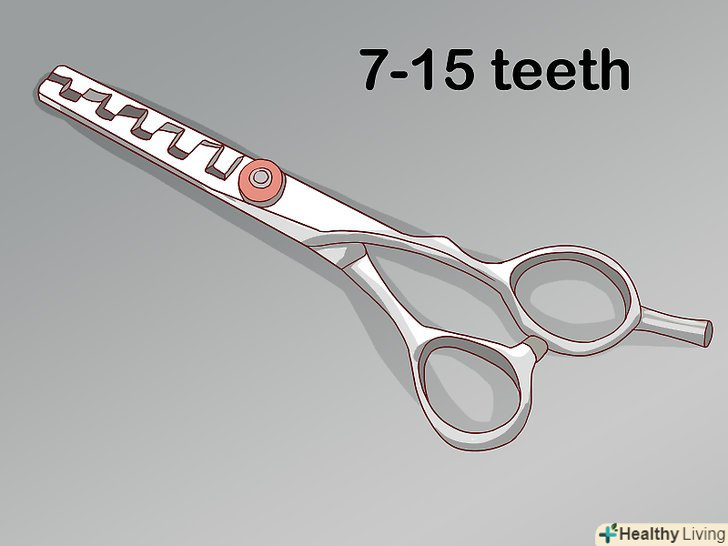 Придбайте класичні філірувальні ножиці для текстурування волосся. ці ножиці універсальні і можуть знімати до 40-70% обсягу волосся декількома швидкими зрізами. Їх можна використовувати для того, щоб надати волоссю більш виразну текстуру або ж плавно згладити різні рівні стрижки. Зазвичай такі ножиці мають близько 25 зубців.