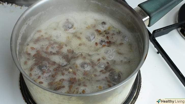 - Закип'ятіть воду з насінням в сотейнику. перелийте суміш з ємності в сотейник. Поставте його на середній вогонь і доведіть до кипіння. [2]