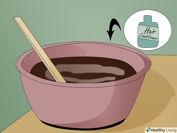 Змішайте каву з кондиціонером для волосся. хоча вам ніщо не заважає використовувати будь-який кондиціонер для волосся, більш густі кондиціонери здатні полегшити подальше нанесення суміші на волосся. Змішайте 240 мл звареної кави з 30 мл кондиціонера і 30 мл органічної кавової гущі. [3] ложкою розмішайте інгредієнти.- Якщо у вас довге волосся, використовуйте більше кави та кондиціонера. [4] точних вимірювань, звичайно, дотримуватися необов'язково, але так ви будете знати, на які обсяги орієнтуватися.