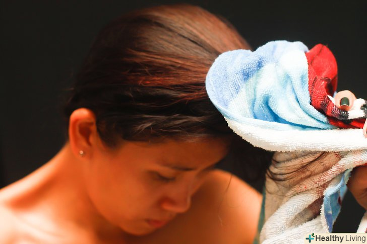 Промакивайте волосся, щоб висушити. використовуйте футболку з 100% бавовни, рушником з мікрофібри або навіть паперові рушники. Тільки промокайте вологе волосся, але не тріть їх рушником.