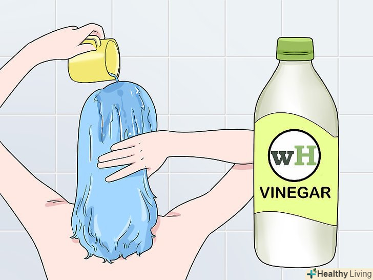 Відразу після фарбування обполосніть волосся оцтом. для того щоб колір тримався довше і був більш яскравим, промийте волосся водним розчином білого оцту (1 частина оцту на 1 частину води). Змішайте склянку оцту і склянку води в невеликій мисці і полийте цим розчином волосся. Зачекайте близько двох хвилин, потім ретельно промийте волосся водою. [9]- Після цього можете знову скористатися шампунем і кондиціонером, щоб змити з волосся запах оцту.